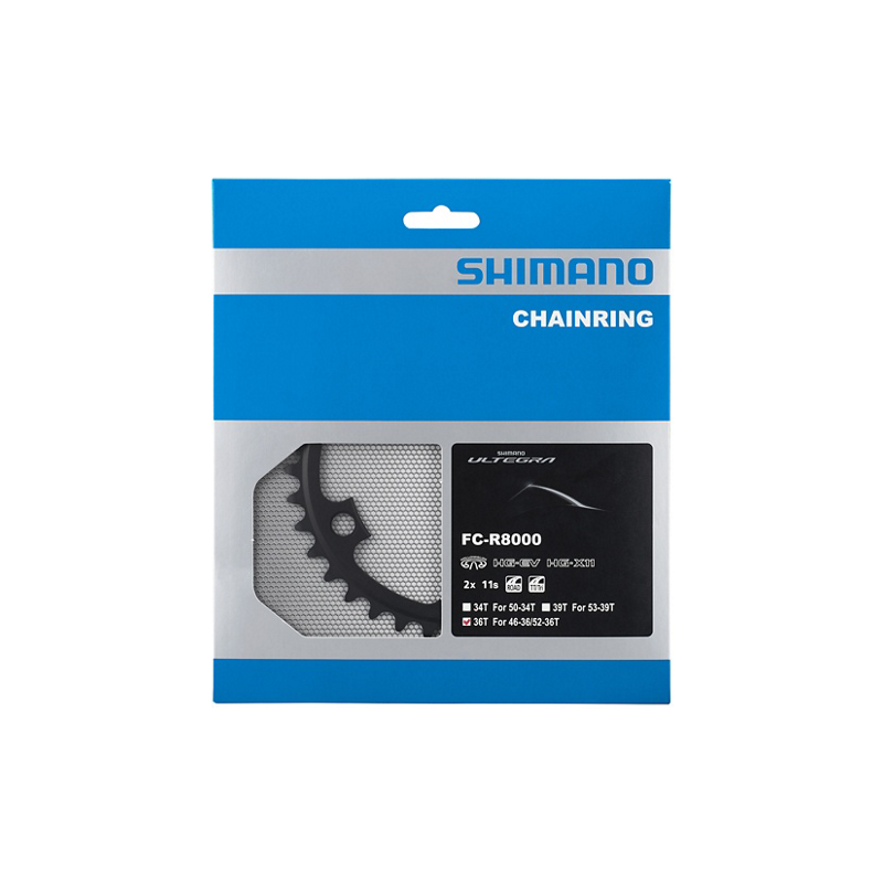 Ingranaggio di ricambio Shimano per la guarnitura Ultegra 11 velocità FC-8000 (MS) con 52/36 denti.Gli ingranaggi cavi forgiati forniscono un significativo risparmio di peso e una maggiore rigidità e garantisce un trasferimento di potenza ottimale e caratteristiche di cambio ulteriormente migliorate.