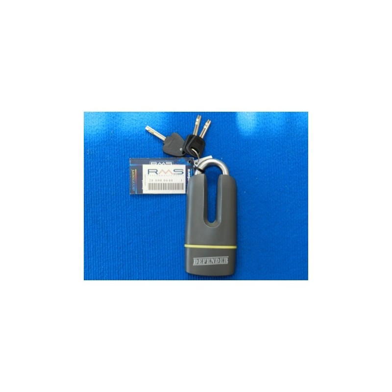 Lucchetto Blocca disco con speciale sistema di serratura antiacqua e antipolvere, tre chiavi piatte con mini lampadina incorporata Disck Lock with special locking system, 3 flat keys with lamp indicator